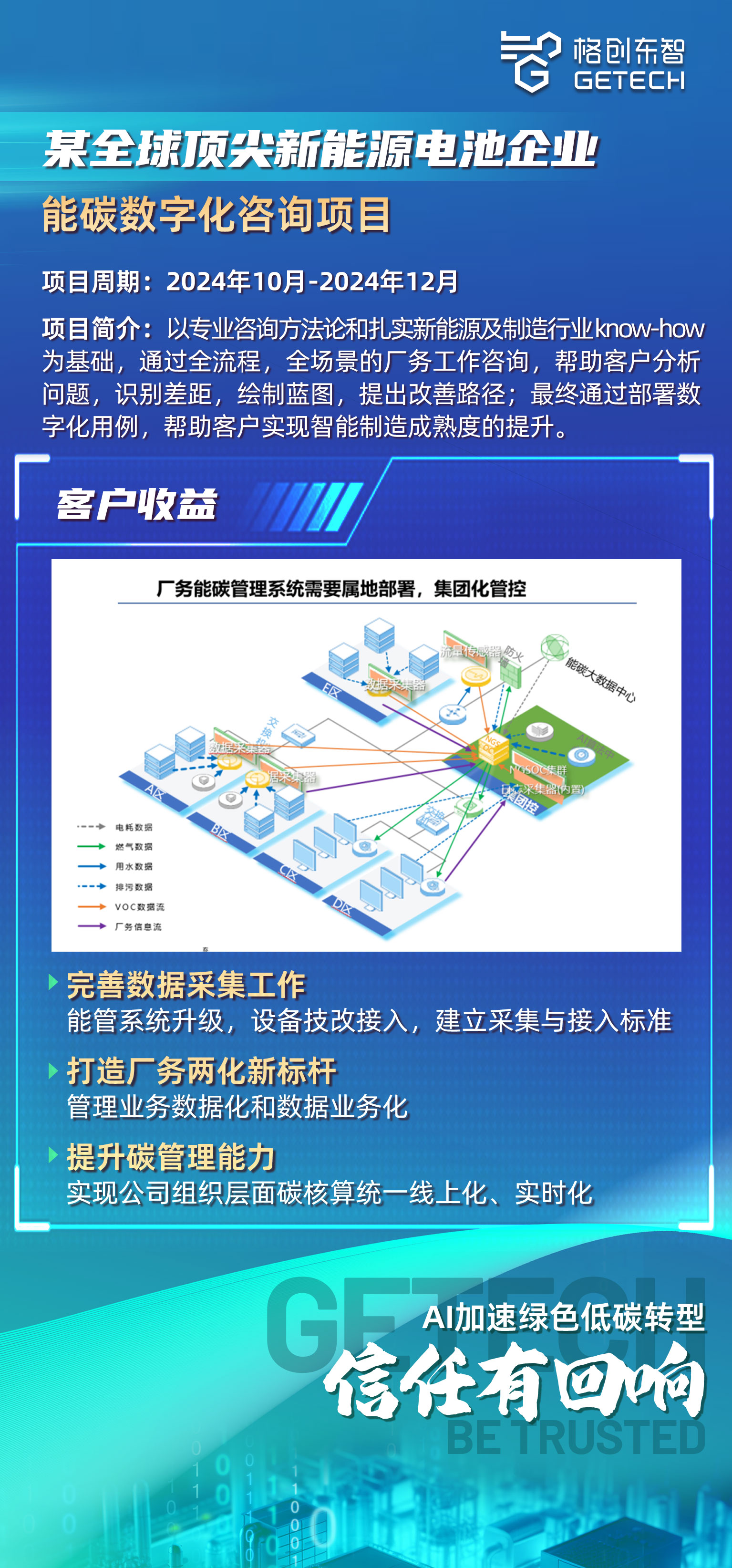 Only by mastering systematic energy and carbon management strategies can one effectively respond to global policy requirements and market competition. Choose GETECH's optimal digital solution for energy and dual-carbon transformation, and join us in advancing toward a green and low-carbon future.