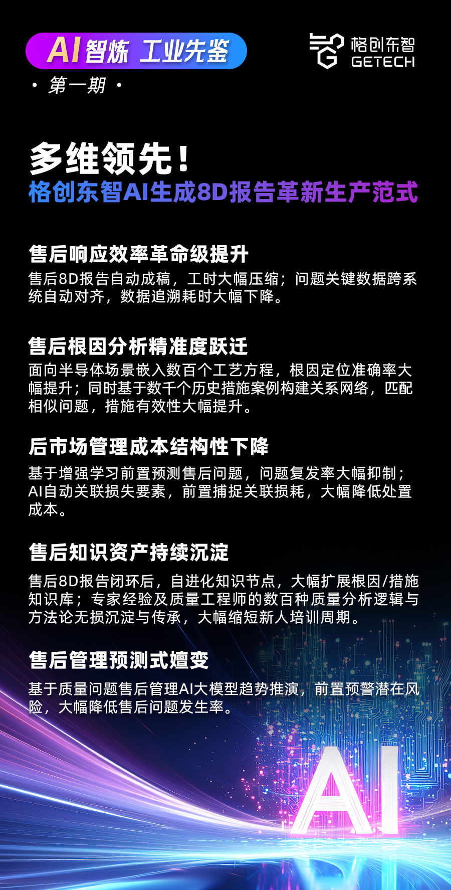 Recently, GETECH, as a leading team in industrial AI, officially integrated DeepSeek and showcased the 'fruits of AI intelligence' in industrial scenarios, defining a new technical path for the next generation of after-sales 8D reports:
