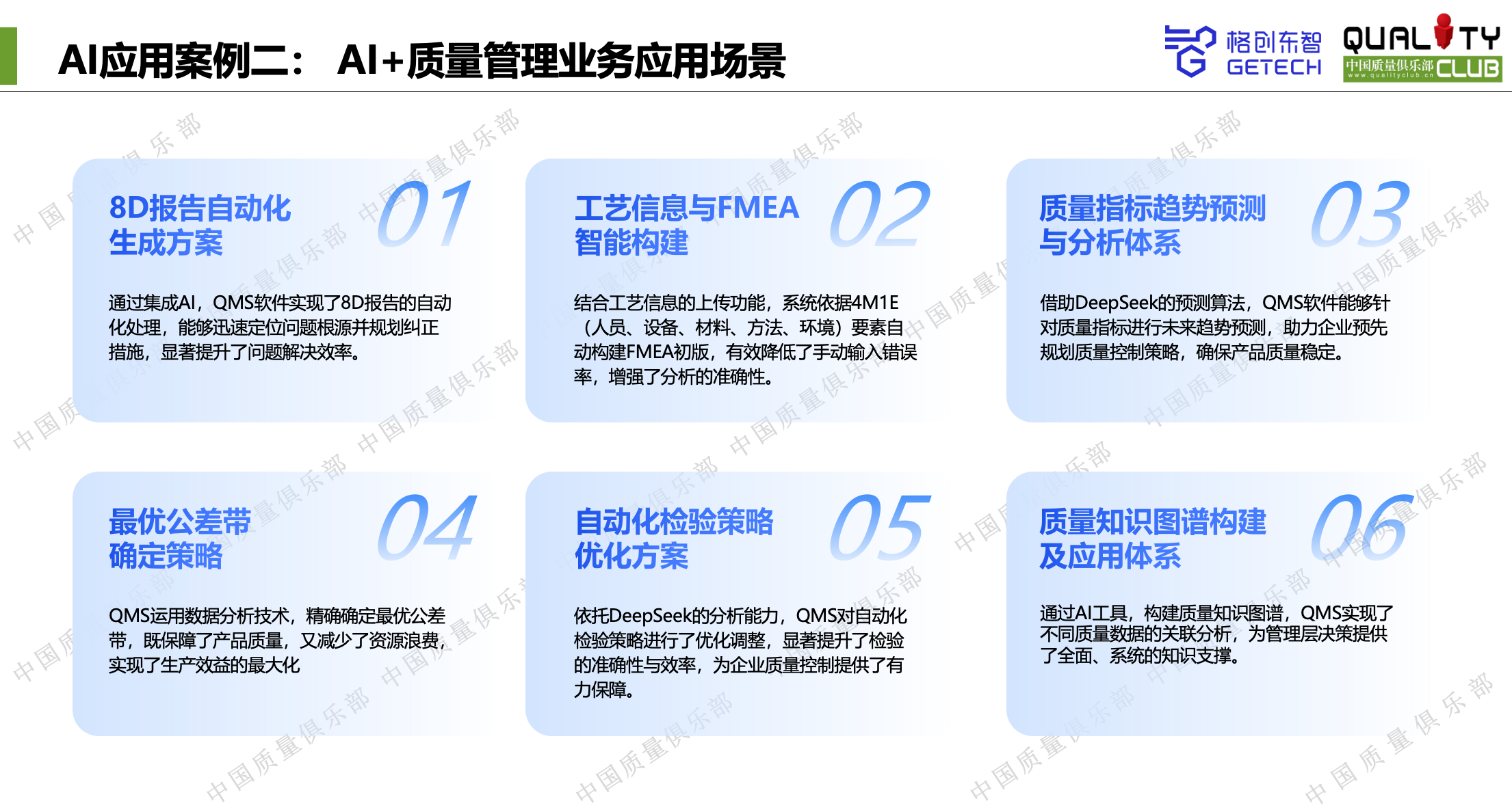 以质量预测场景为例,基于实时制程参数数据与量测数据,亚星游戏官网东智打造了AI+大数据挖掘质量预测模型,在不中断生产流程的前提下,实时掌握制程品质动态,提前发现潜在质量风险,及时调整生产策略,进而提升产品质量,降低废品率。此外,公司已形成丰富的AI+质量管理工具,比如8D报告自动化生成方案、工艺信息与FMEA智能构建、质量指标趋势预测与分析体系、自动化检验策略优化方案等。其中,在国内某龙头扫地机器人企业实践中,AI生成的售后问题8D报告,推动质量部门从人工中心向利润中心转型,单厂年均创造隐性收益近千万。