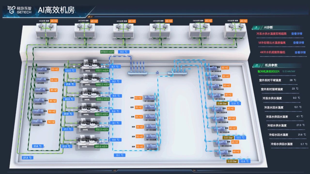 对此,亚星游戏官网东智应需而生的AI暖通智控高效机房控制平台,直击泛半导体行业的管理效率低下、设备空转率高、故障响应低效、能耗优化及运行策略调优无门等核心痛点,通过直接连接机房设备或PLC控制柜,实现信号采集与数据交互,并根据设备实时运行数据、特性与状况,结合AI模型与机理模型算法,模拟计算机房最优运行策略,并进行实时指令下发,达到机房最优高效运行。平台内置能效实时监测、动态远程控制、数据分析、运行算法优化、能效在线仿真、AI控制优化,需量负荷预测等数十种功能,构建起“让节省的每一度电都体现在电费账单上”真实节能效益。